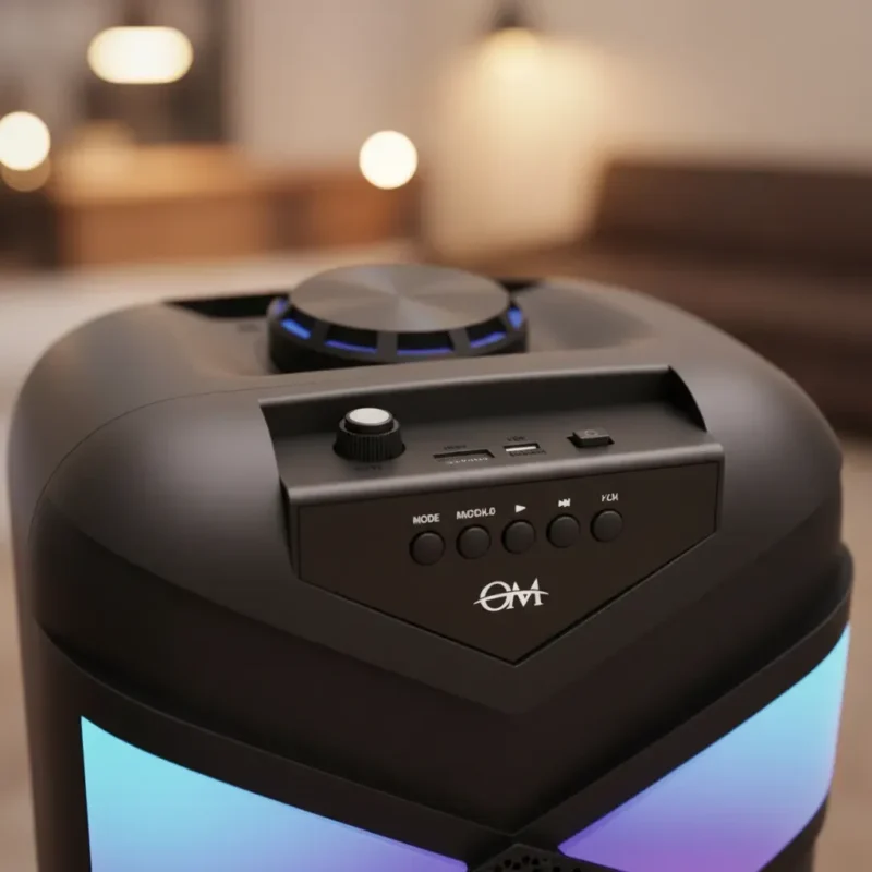 El parlante portátil OM-2073 es una opción práctica y versátil para disfrutar de música en cualquier lugar. Cuenta con conectividad Bluetooth para reproducir audio de forma inalámbrica desde celulares, tablets u otros dispositivos compatibles. Incorpora luces LED que acompañan la reproducción y un micrófono incluido, ideal para karaoke, reuniones o amplificación de voz. Su batería recargable integrada permite utilizarlo sin necesidad de estar conectado a la corriente, lo que lo hace cómodo para usar tanto en interiores como en exteriores.