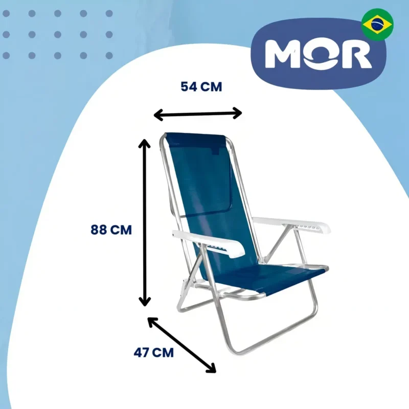 Relax total para tu jardín, terraza, playa o camping con esta reposera de la marca MOR modelo 2400 en color azul. Cuenta con estructura de aluminio liviana y resistente, apoyabrazos ergonómicos y respaldo reclinable en 8 posiciones para adaptarse a tu momento de descanso. Su diseño plegable facilita el transporte y almacenamiento cuando no está en uso. Ideal para disfrutar al aire libre con comodidad, durabilidad y estilo.